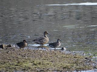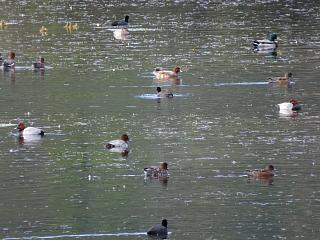 池縁にはさっそくオナガガモ&コガモ(左)が佇んでいらっしゃってて、