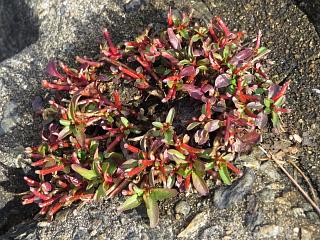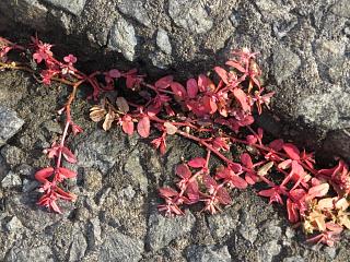 岸辺にはビックリするくらい紅葉しているニシキソウ類(左)もありました。