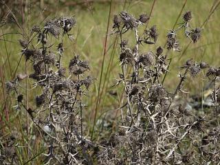 アメリカオニアザミ(左)やらセイヨウオトギリソウ(右)やらの枯れ穂も