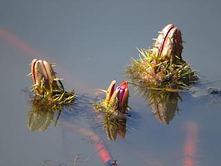 水中には枯れかけたヒシの茎(左)がちょっと異様な雰囲気を