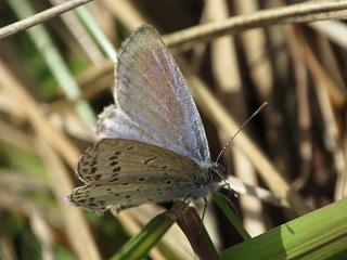 さらにあたりではふわりとヤマトシジミ(右)がご登場。気温あがってきたかな。