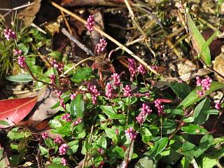 たっぷり実をつけて紅葉している植物(右)も発見。チョウジタデでいいのかな?