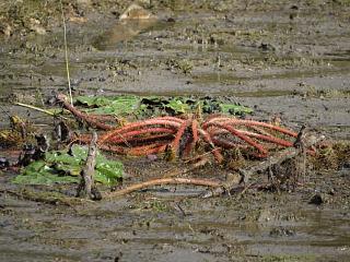干上がっていたオニバス(右)。茎がなんとも面白い雰囲気を醸していて