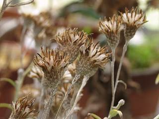 冷温室をのぞくと、アサマヒゴタイ(左)やらホクチアザミ(右)やらといった