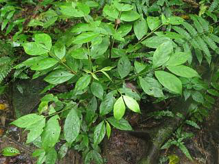 ちょっと驚いたのは、沢の中にあったシダ類(左)。ミツデヘラシダでいいんだっけ?