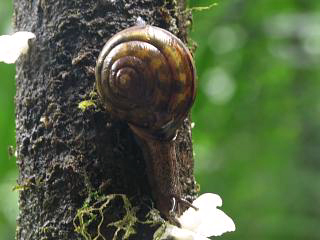 あたりにはのんびりしているイッシキマイマイ(右)なんかも見つかります。