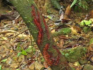 辺りの樹木にはなんか不思議な傷(左)があったり。リュウキュウイノシシの仕業かな?