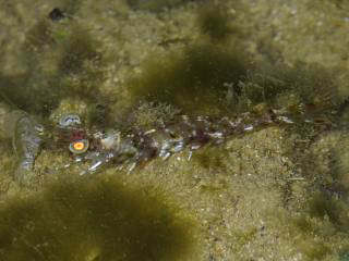 ちょっと不思議な雰囲気のエビ類(左)も発見。フトミゾエビの範疇?