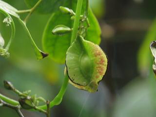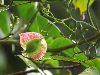 実をつけたインドヒモカズラ(右)もありましたが、ずぶ濡れなのが伝わるかな(笑