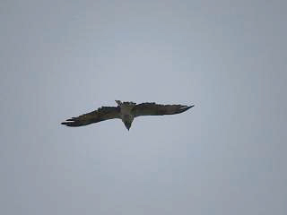 しょうがないので水田地帯を中心にうろつくと、上空をミサゴ(左)が横切って、