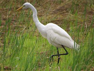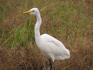 さらにうろうろすると、アオサギ(左)がいたり、チュウサギ(右)が隠れていたりしますが、