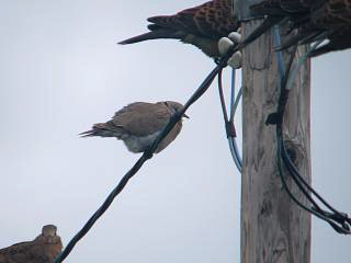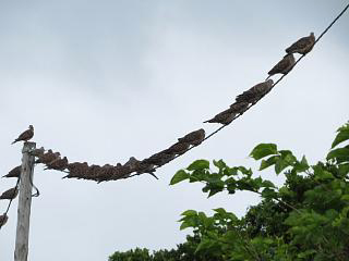 うろうろしていくと、なぜか電線にリュウキュウキジバト(左)が鈴なりという一幕も。