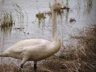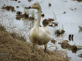 さらに場所を変えると、まさかのコハクチョウ幼鳥が水田地帯にたたずんでいて