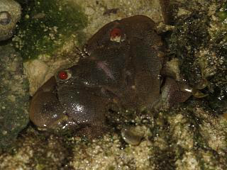 岩場に移るとイワオウギガニ(左にもすぐに遭遇。やっぱ多いね。)