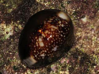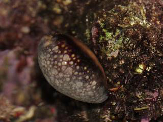 小柄なタカラガイ類(左)も発見。これもハナマルユキダカラかな?