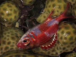 ステンドグラスみたいな面白い模様のサンゴ類(左)もありました。