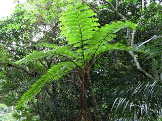 とりあえず狙いのエリアに到着し、ヒカゲヘゴ(右)なんぞ見ながら歩き始めることに。