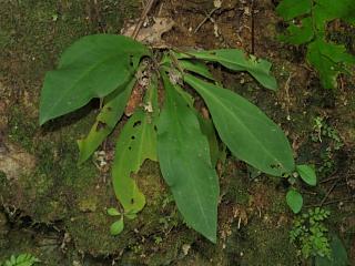 葉だけの株(左)はけっこうあちこちにありました。