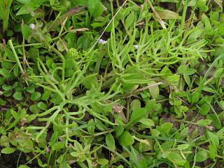 ナガバイナモリ(左)はまだまだ小さな花芽のついた株だけでした。なんで?