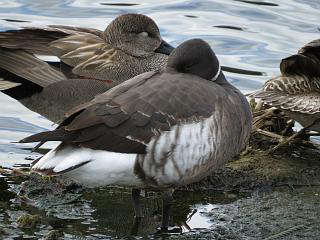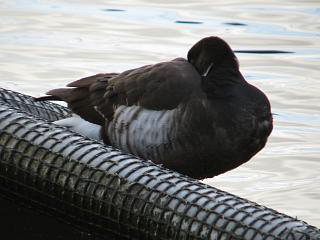 しょうがないので池に戻ってみると、コクガン(右)はやっぱり寝たまんまでした。