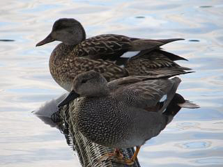 オナガガモ(左)やらオカヨシガモ(右)やらが至近距離でウロウロ。