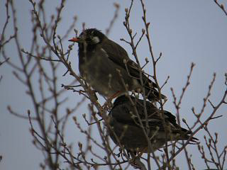 水鳥以外は梢にムクドリ(右)がいたくらいでこちらも期待薄だな、