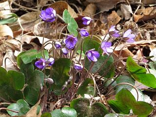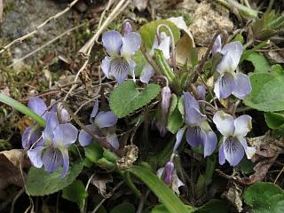 あたりにはアオイスミレ(右)がそこここに可愛らしく群生していたりします。