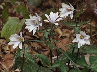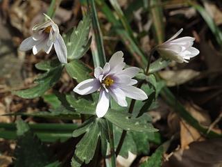 花芽をつけたカタクリ(左)や、開きかけのミスミソウ(右)なんかが見つかります。